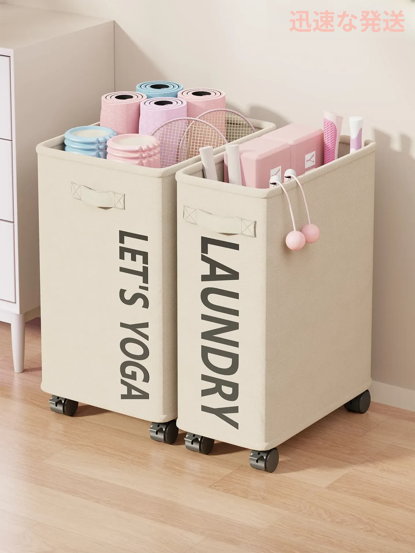 ヨガマット収納バスケット 大容量で移動もラクラク!バドミントンラケットやフィットネス器具もすっきり収納できる便利アイテム!お家での運動をもっと快適に!