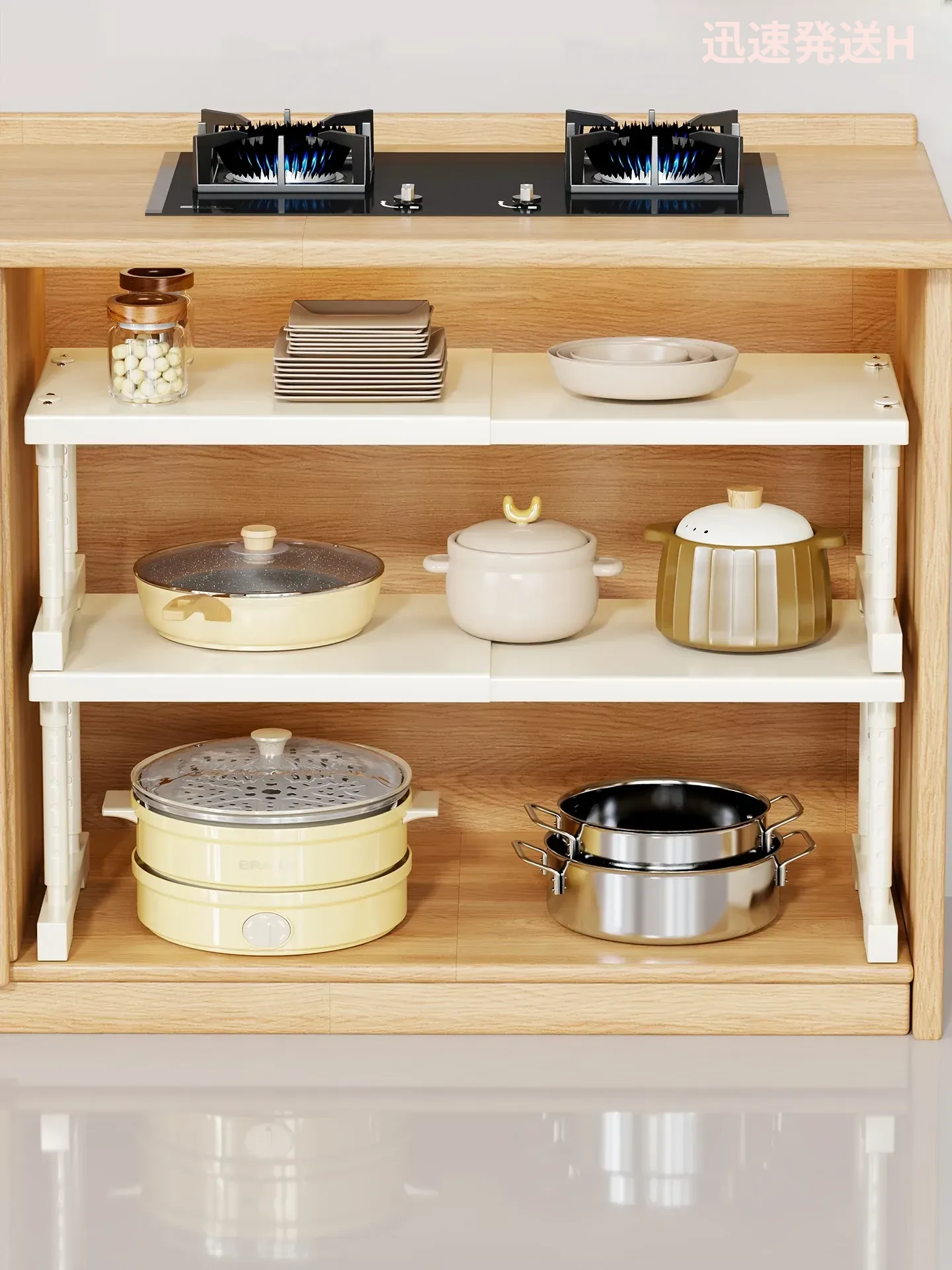 クローゼット用分割棚 - 収納力抜群の衣類整理ラック!伸縮可能な多層設計で、クローゼットやキッチンキャビネット内をスッキリ整頓。あなたの収納スペースを最大限に活用します!