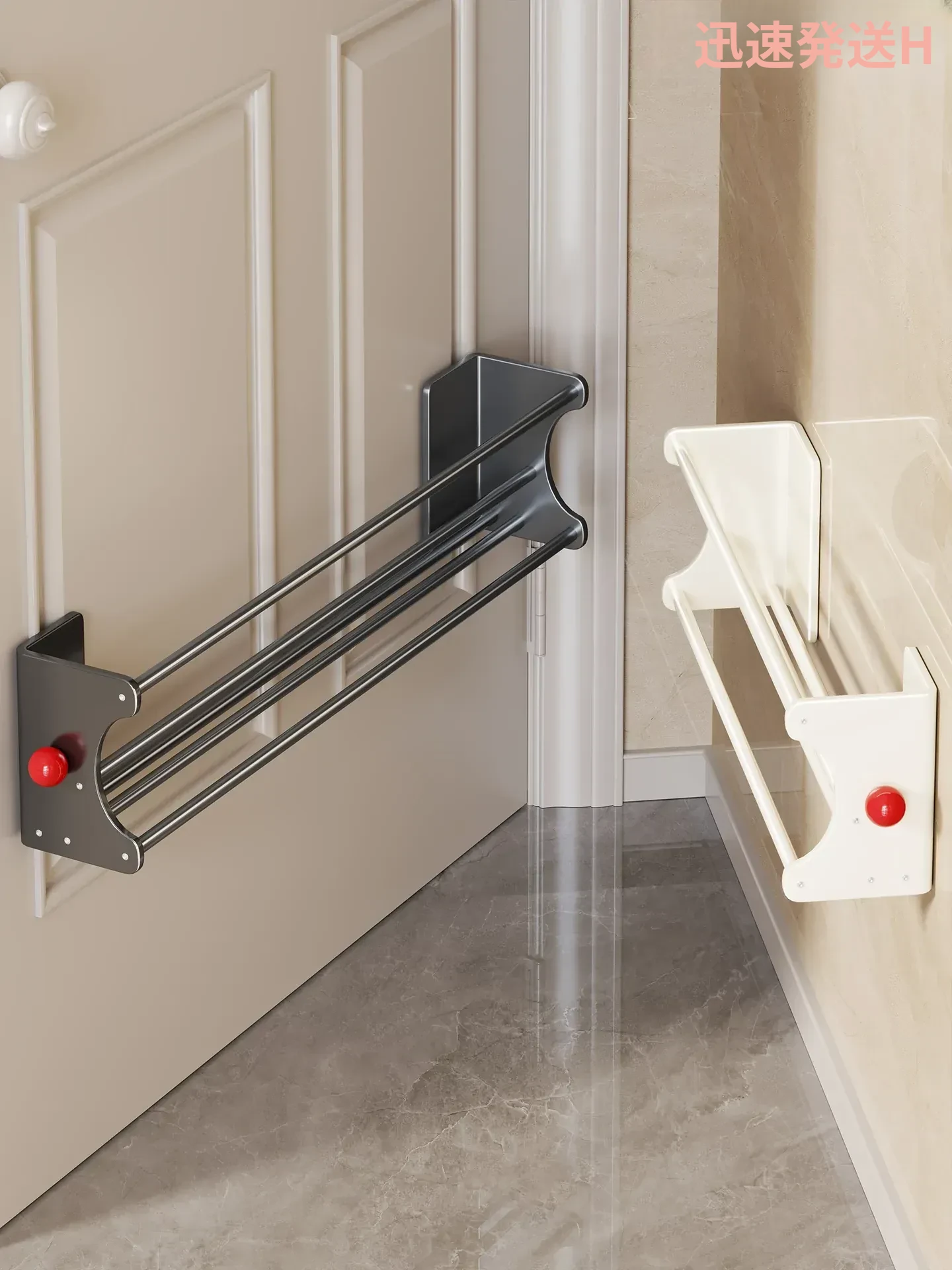 マグネット式シューズラック - 玄関やバスルームに最適!穴を開けずに簡単取り付け、二段構造でスリッパや靴をしっかり収納。水切り機能付きで清潔感も保てる!
