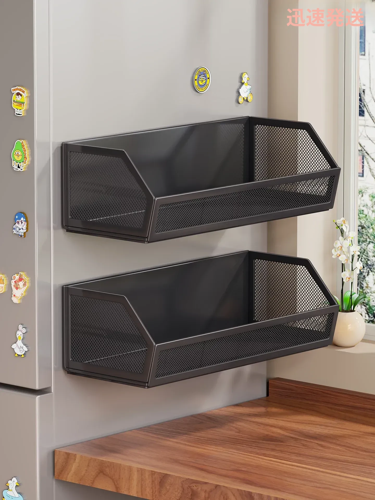 キッチン冷蔵庫サイド収納ラック|調味料・ラップ・マグネット式収納|ティッシュ・トイレットペーパー収納の必需品!スペースを有効活用して、整理整頓を簡単に!
